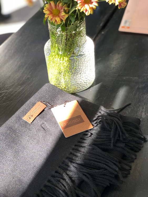 شال موهر گرنسی تک رنگ مشکی ، مخصوص روز های سرد و استایل گرم شما، این شال بسیار لطیف است و به راحتی روی سر قرار میگیرد و احساس زیبایی و راحتی را به همراه دارد .